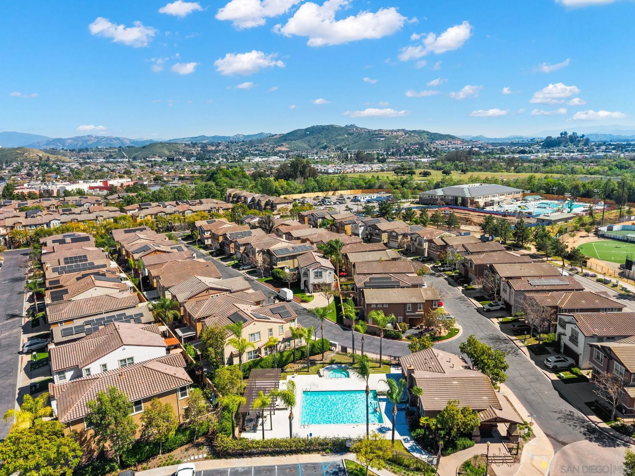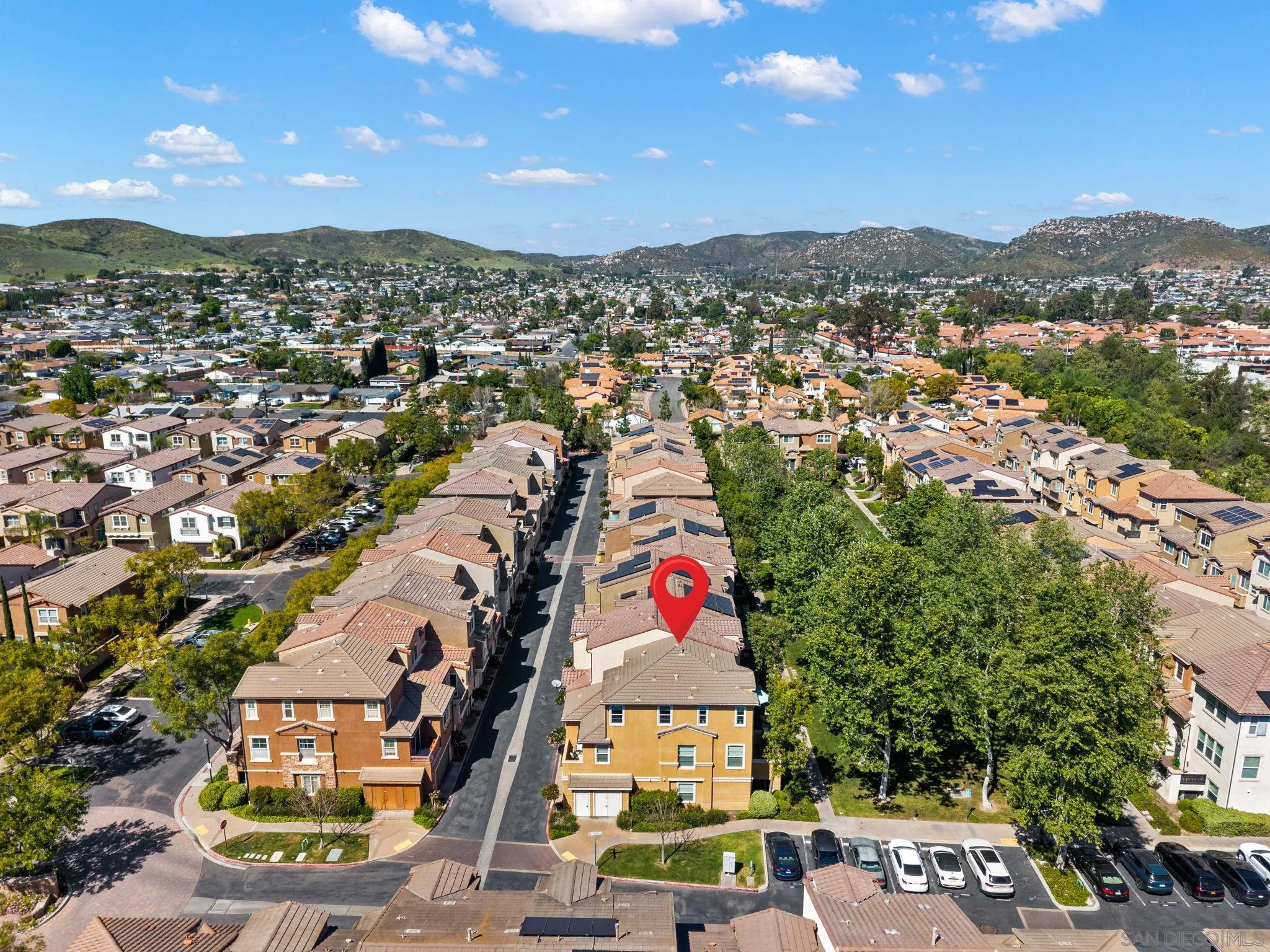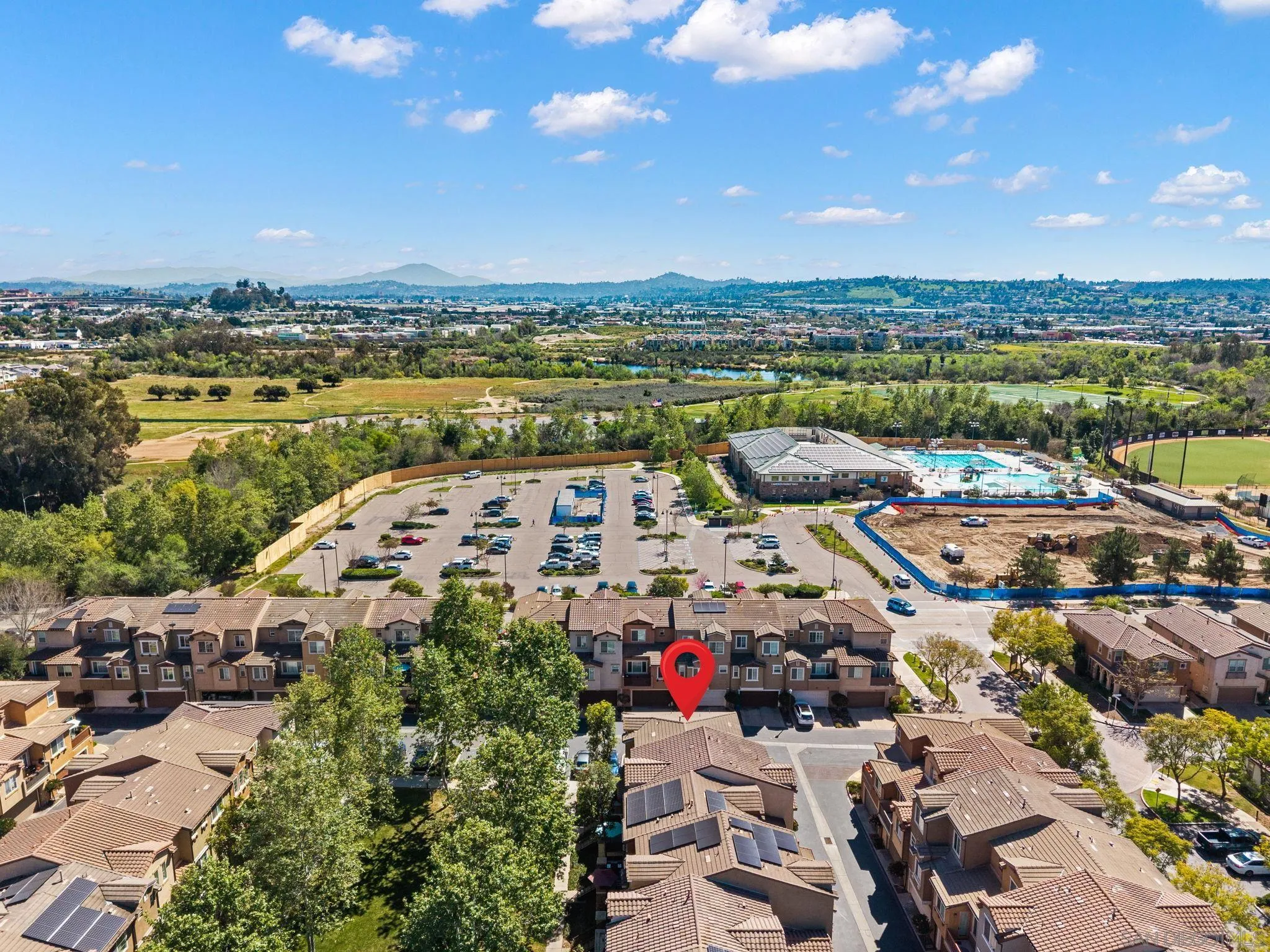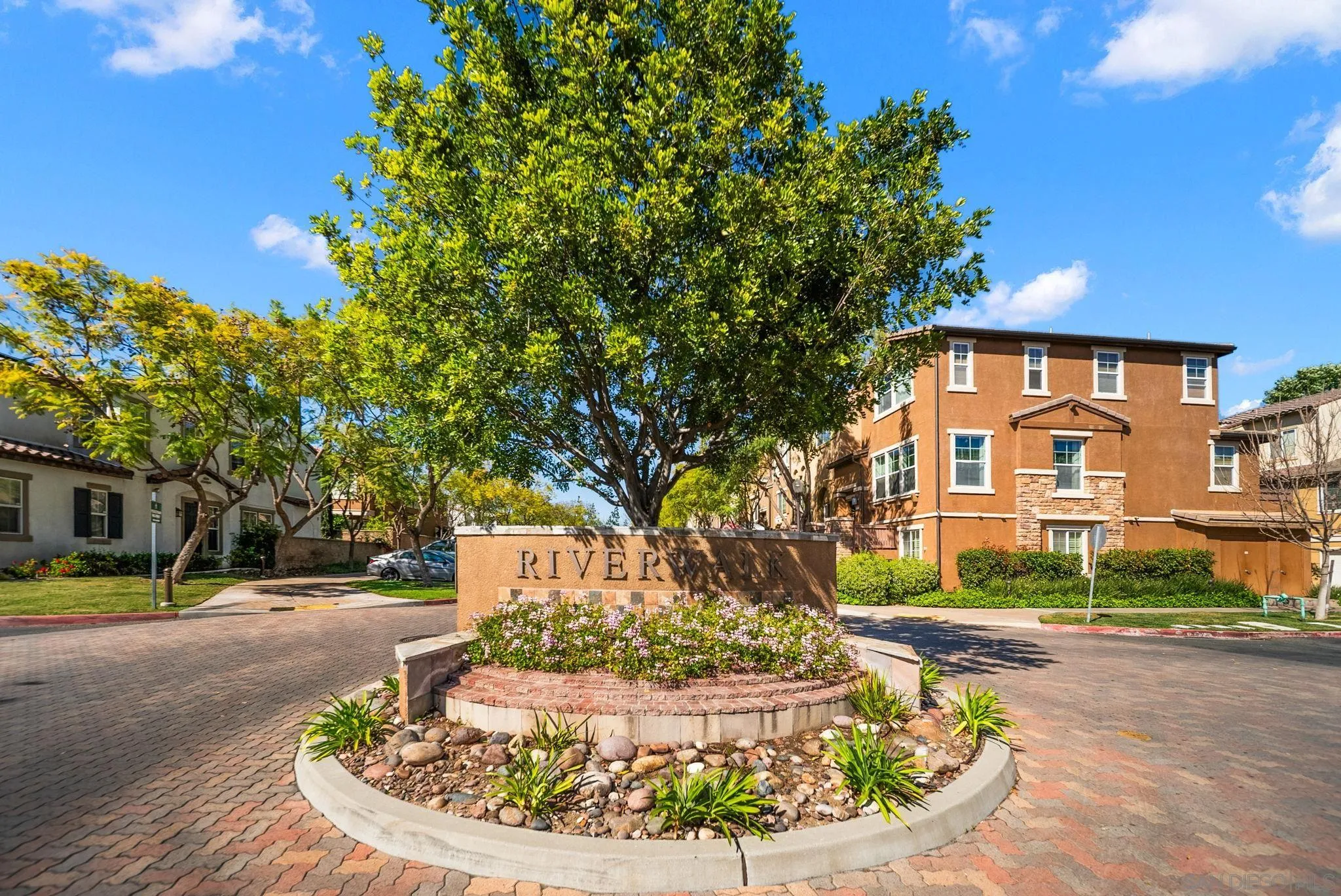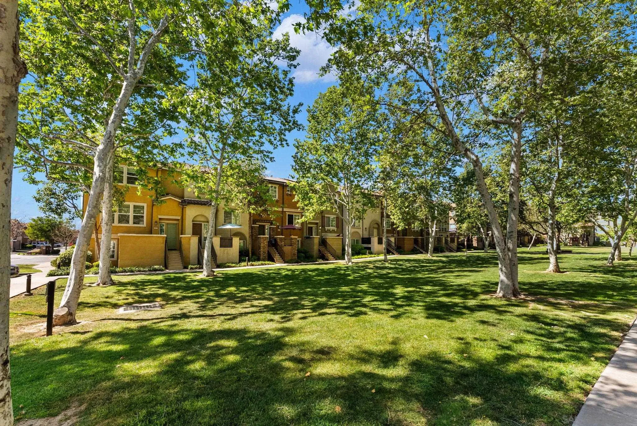 Located in the highly sought-after Riverwalk community, this spacious end-unit, detached rowhome offers one of the largest floor plans available, with over 2,220 sq ft, 4 bedrooms, and 3.5 bathrooms perched above an expansive greenbelt. The home lives and feels like a single family home with direct garage access and laundry room. Inside, the main living area is filled with natural light and showcases high ceilings, fresh interior paint, and hard surface flooring. The large kitchen offers ample cabinetry, a walk-in pantry, and opens to a large dining area that's perfect for everyday living or entertaining. The flexible layout works for a variety of living situations, with a downstairs bedroom, full bath, and a generously sized bonus room ideal for a secondary living space, guest suite, or home office. Upstairs features dual primary suites, offering both comfort and privacy. Additional highlights include updated windows, new AC, updated kitchen appliances, a full laundry room, and direct access to the attached two-car garage. Riverwalk residents enjoy access to a community pool, spa, tot lot, and multiple greenbelts, making this a well-rounded place to call home. Just across the street from the highly rated K-8 school, YMCA, and the Santee Sportsplex, home to summer concerts, 4th of July celebrations, and year-round events. The location offers an unbeatable blend of convenience and community. Come see why people love living here and choose to stay!
