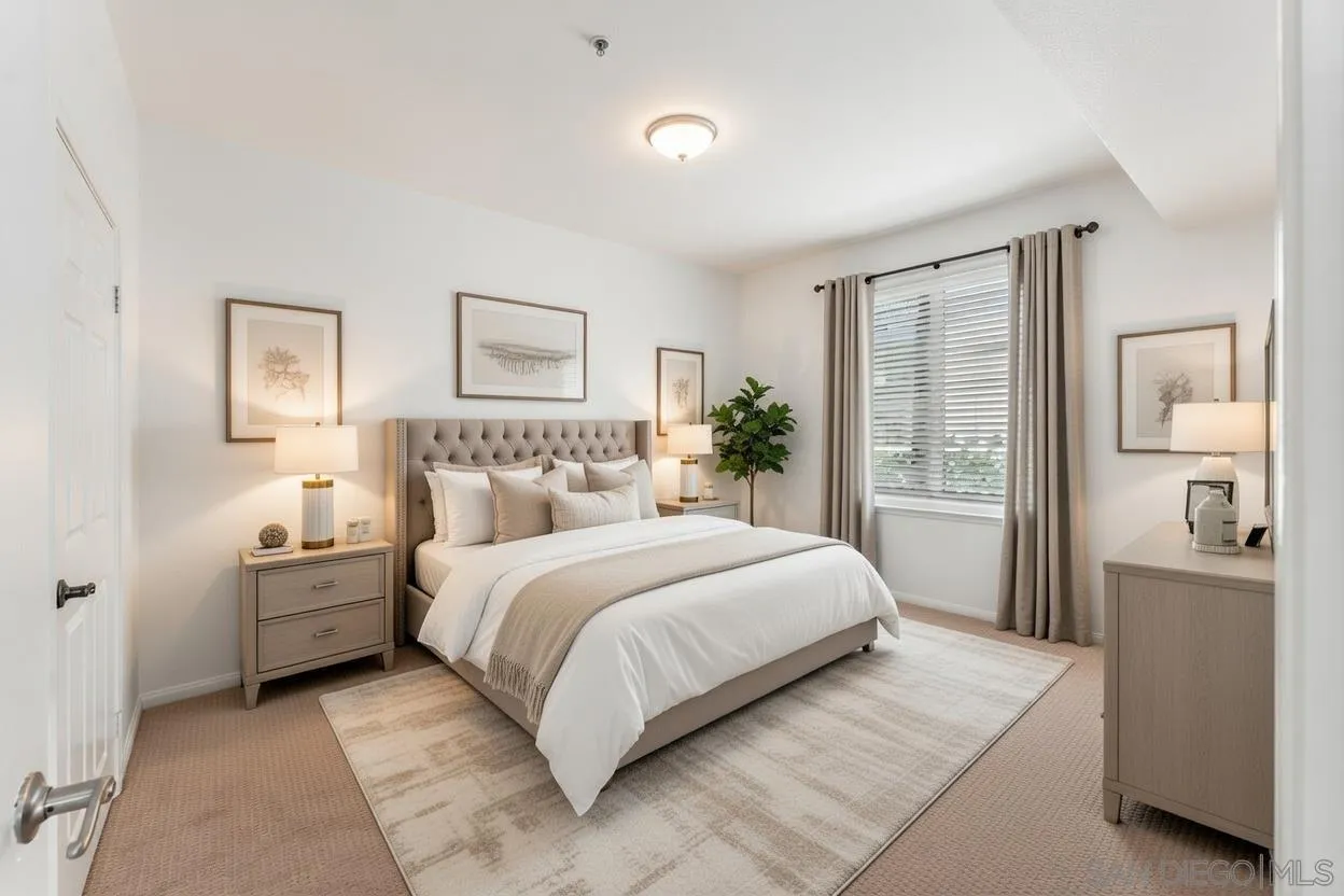 Welcome to this well situated single story condo in the heart of Otay Ranch. Just steps from the East Palomar business district with shops, restaurants, and daily conveniences, the location of this home is truly unbeatable. Inside, the layout is thoughtfully designed with two generously sized bedrooms, each featuring walk in closets, and two full bathrooms. The home includes a full size in unit laundry closet and direct access to your private garage through a shared hallway. Recently refreshed with new paint and carpet, this desirable corner unit shares only one wall and enjoys abundant natural light thanks to its southern exposure. A private patio offers a peaceful outdoor space, while the community provides the full resort style experience including multiple pools, a fitness center, basketball courts, parks, and scenic trails. It is everything that makes Otay Ranch one of Chula Vista's most sought after neighborhoods. Whether you are a first time buyer, downsizing, or investing, this home delivers comfort, convenience, and easy living.